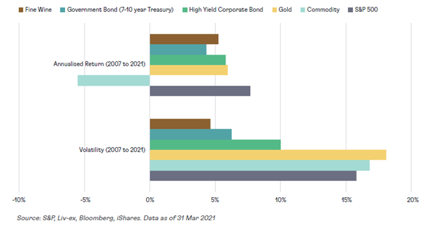 Wine has proved to be a perfect risk hedge as an investment as the overall price and volatility risk is substantially lower than diversified equities.